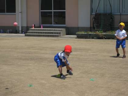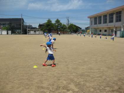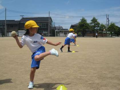 体力テストに向けてソフトボール投げの練習をしました。初めてのソフトボール投げも楽しそうに取り組み、体の向きや足の出し方に注意して力いっぱいボールを投げていました。