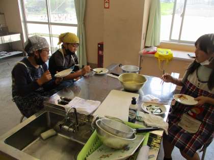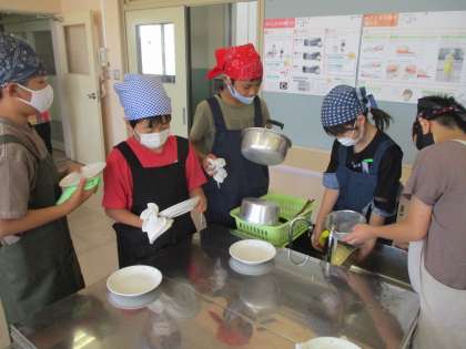 家庭科の学習で、ほうれん草とじゃがいもを茹でました。役割を分担して協力していました。今日は、包丁を使ってほうれん草を切る場面もありました。押さえる手の形に気を付けていました。