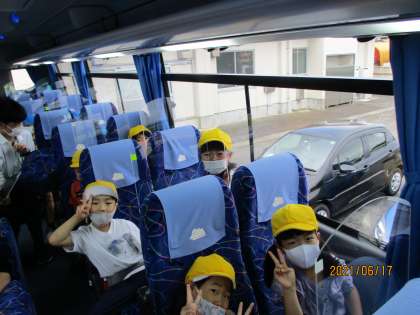1年生にとっては初めての校外学習、うきうきでバスに乗り込みました。