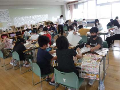 スーパーマーケットのチラシを使って、私達が食べているものの産地を調べました。まとめてみると、外国からの食料品が多いことや野菜が多い地域があることなどに気付きました。気候や地形と関係がありそうだと予想をたてていました。