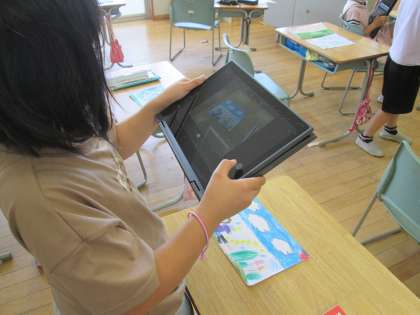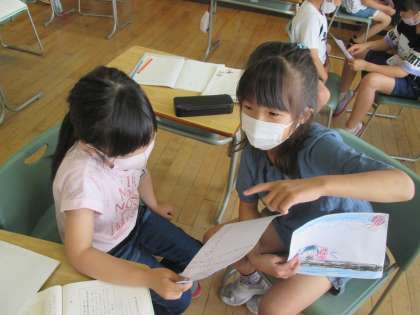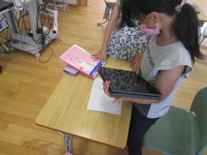 6月24日(木) 2年国語「あったらいいな、こんなもの」 公開日 2021/06/24 更新日 2021/06/24 2年生 国語科の学習では、「あったらいいな」と思うものを考え、発表する準備をしています。今日はペアの友達と話し合って、自分の考えていたものをさらにくわしくする学習を行いました。話し合いをする前後で絵の写真を撮り、どこが詳しくなったのか比較しました。