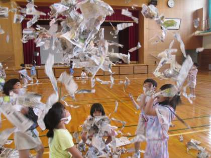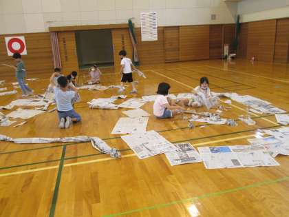 6月29日(火) 2年 図画工作科 しんぶんしとなかよし 公開日 2021/06/29 更新日 2021/06/29 2年生 新聞紙をちぎったり、丸めたり、つなげたり、かぶったりしながら、思いついたことを表しました。材料は新聞紙だけでしたが、思い思いのものを表現し、楽しみながら活動していました。