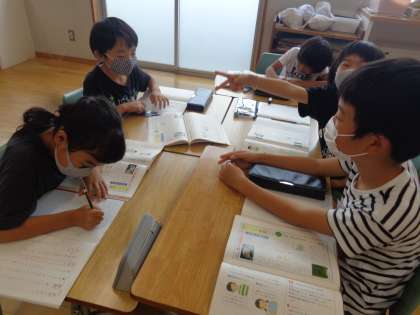 国語科「新聞を作ろう」の学習では、新聞には見出しや写真を付けて分かりやすく書く工夫が必要なことを確かめました。そして、グループに分かれて新聞に書く内容を話し合い、決めました。
