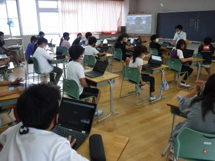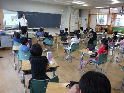 端末クロムブックを総合的な学習の時間で使いながら授業をしました。