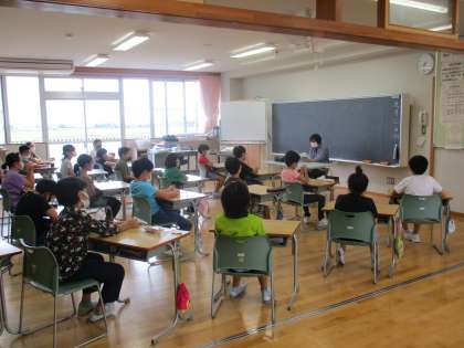 今日から2学期の読み聞かせが始まりました。朝の15分間という短い時間ですが、物語を真剣に聞き、その世界に引き込まれていました。コロナ禍でも、地域の方のご理解とご協力のもと、感染症対策をしながら、子供たちが楽しみにしている活動ができることがうれしいです。