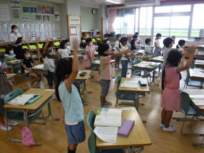 今日から2名の教育実習が始まりました。全校への紹介は、職員室と各教室をつなぎ、オンラインで実施しました。二人とも本校の卒業生で、学校の先生を目指しています。教職員一同、しっかりサポートしていきます。