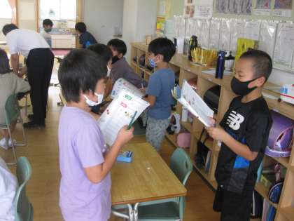 今日は、「What do you like?」を学習しました。子供たちは英語を使って友達に好きな色や食べ物を聞きました。互いに笑顔で会話していました。