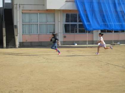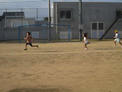 今日の朝のトレーニングでは、2・5年生が元気いっぱい走りました。「夏休み前より速くなった気がする。」「勝負しよう。」などとお互いに声を掛け合って取り組んでいました。