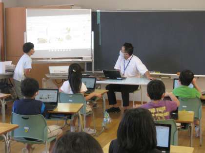 総合的な学習の時間では、「老田の梨」について学習しています。子供たちは調べたことや気付いたことをタブレットのスライドでまとめました。そして、一人一人がスライドを提示しながら、発表しました。老田の梨について調べることを通して、老田地区のよさをまた一つ感じ取ることができたのではないかと思います。