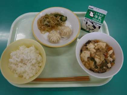 ・ご飯 ・牛乳 麻婆豆腐 ・海老パオツ ・バンサンスー です。