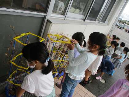 生活科「あさがおとなかよし」の学習で、新しいたねの様子を観察しました。