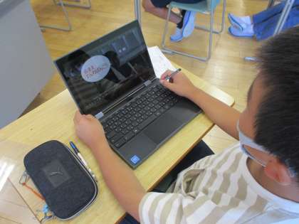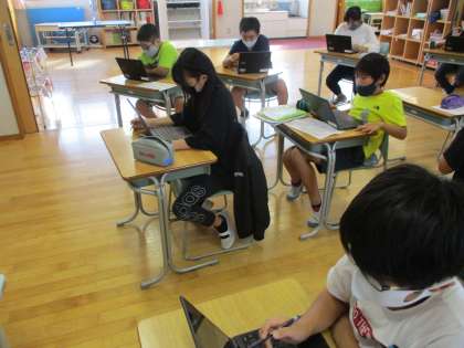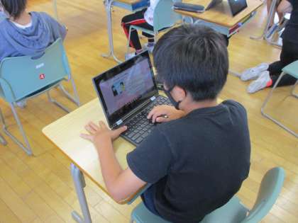 今日の道徳で、「事例で学ぶネットモラル」の動画等を見て携帯電話やスマートフォンを使い方について改めて考えました。次にネットモラル検定を行い、学習したことを確かめたり、間違えた問題を動画を見て復習したりしました。