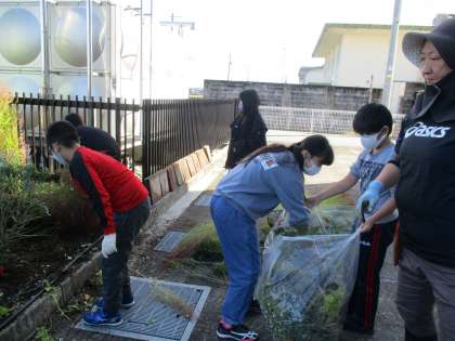 環境保健委員会の児童が、休み時間に花壇の整備をしました。寒い中でしたが、夏に花壇を彩っていた花々を掘り起こしました。学校花壇も、衣替えです。