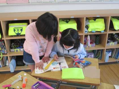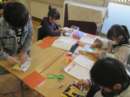 国語科では「馬のおもちゃの作り方」を読み、実際におもちゃを作ってみました。分かりやすく説明するための工夫を見付けながら読み進め、説明書通りに作ることができました。