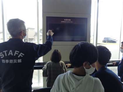 四季防災館では、地震の揺れの体験や火の消火活動を体験してきました。社会科で気になっていた「震度5や7の揺れってどんな感じなのかな」といった疑問等も、身をもって実感することができた機会だったと思います。