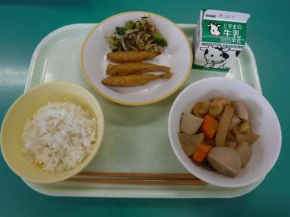 11月1日(月) 本日の給食 公開日 2021/11/01 更新日 2021/11/01 今日のひとコマ 今日の献立は、 ・ご飯 ・牛乳 ・おでん ・わかさぎのフリッター ・昆布和え です。 11月に入り、めっきり朝夕が冷えてきました。おでんがぴったりの季節です。