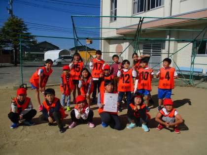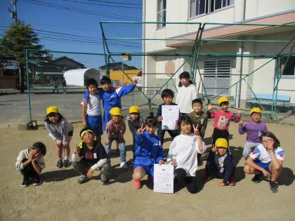 11月6日(土) なかよし班対抗リレー大会5 公開日 2021/11/06 更新日 2021/11/06 学校行事 表彰された班です。どの班も練習のタイムより10秒近くタイムを縮めていました。一番タイムを縮めた黄団11・12班は練習より18秒も早く走りました。