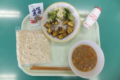 11月12日(金) 本日の給食 公開日 2021/11/12 更新日 2021/11/12 本日の給食 今日の献立は、 ・ソフトめん ・のむヨーグルト ・大学いも ・はなやさいサラダ ・肉みそあんかけ です。 「大学いもの名前の由来は大学生が学費を稼ぐために売っていた料理だから【諸説あり】」だそうです。甘すぎないサラッとした蜜をまとったサツマイモがとてもおいしかったです。