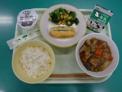 今日は11月に入って2回目の「学校給食とやまの日」です。シイラは9月から富山湾に回遊してくる魚、ラフランスは立山町の特産です。エゴマは給食ではすっかりおなじみになった食材です。