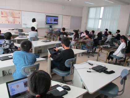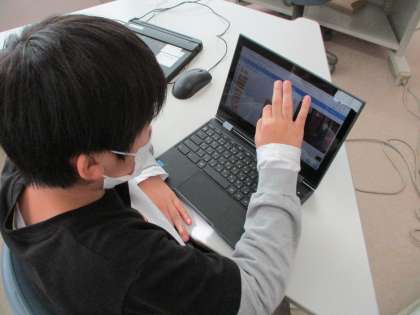 講師の先生をお招きし、プログラミング学習を行いました。スクラッチを使って、剣士や魔法使いのキャラクターを動かすために、どのようなプログラムにしたらよいか考えました。子供たちは、キャラクターが思い通りに動くと、喜んでいました。