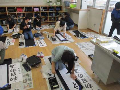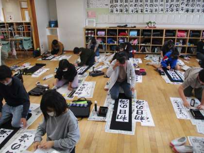 12月16日(木) 5年生 書初練習 公開日 2021/12/17 更新日 2021/12/17 5年生 書初の練習を行いました。「初日の海」という字を手本を見ながら丁寧に書きました。上手く書けるようにがんばっています。