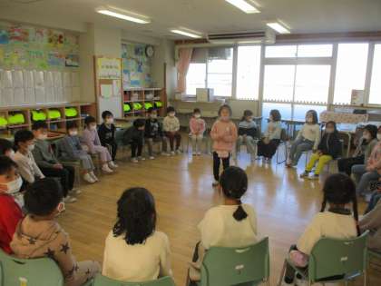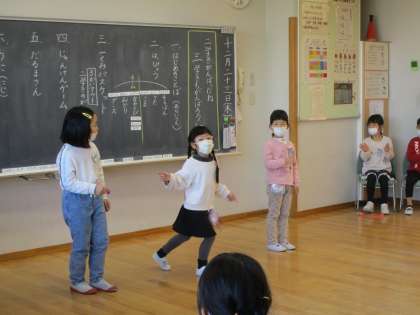 12月23日(木) 1年生 2学期がんばったね集会 公開日 2021/12/24 更新日 2021/12/24 1年生 「2学期がんばったね 3学期もがんばろう集会」をしました。 みんなに見せたいことを発表したり、ゲームをしたりして楽しみました。1組バスケット(フルーツバスケットの1組バージョン)では、2学期にがんばったことをお題にして振り返りました。約束を守って、楽しく過ごすことができました。
