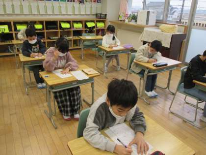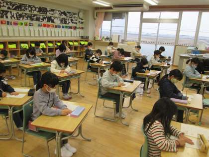 1月11日(火) 2年生始業式・書き初め大会 公開日 2022/01/11 更新日 2022/01/11 2年生 50日間の3学期が始まりました。始業式後、書き初め大会を行いました。どの子も真剣な態度で、一文字一文字丁寧に書くように心がけていました。2022年のよいスタートをきることができました。