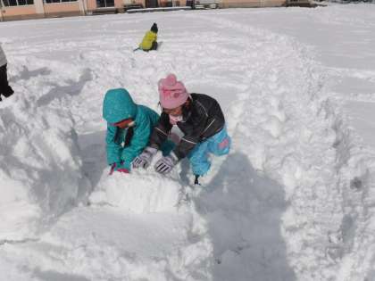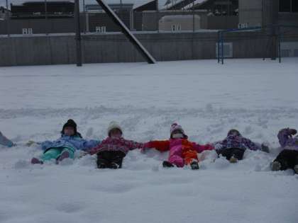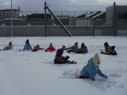 体をおもいっきり使って、雪遊びを楽しんでいる様子です。