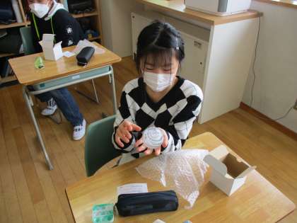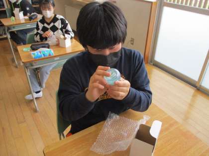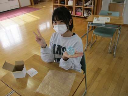 1月13日(木)にガラス工房で製作したペーパーウエイトが完成し、子供たちのもとに届きました。どの子供の作品も大変きれいです。子供たちは出来上がった作品を見て「きれーい」とつぶいていました。