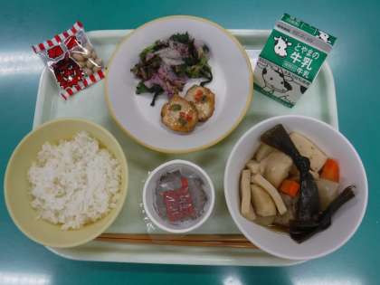 2月3日(木) 本日の給食 公開日 2022/02/03 更新日 2022/02/03 今日のひとコマ 今日の献立は、 ・ご飯 ・牛乳 ・おでん ・ゆかり和え ・野菜の肉巻き ・納豆 ・節分豆 です。 今日は立春前の節分。子供たちは、豆を食べて、どんな鬼を退治したでしょうか。