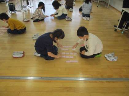 百人一首大会を行いました。何度も練習してきたので、得意な札や上の句で取れる札がたくさんあり、白熱した戦いとなりました。勝った人はもちろん、負けても笑顔で相手を称えることができ、とても立派でした。