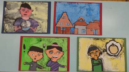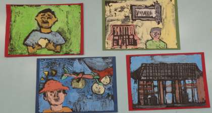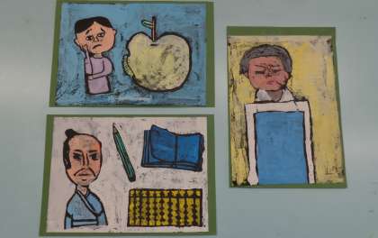 版画では、昨年度に比べて集中力が増し、短時間で丁寧に仕上げることができました。初めての多色刷りも、味わいのある素敵な作品が出そろいました。