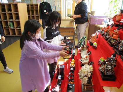 3月4日(金)雛人形 公開日 2022/03/07 更新日 2022/03/07 今日のひとコマ 今日の休み時間に、児童玄関に飾っていた雛人形を片付けました。子供たちも一緒に大切に扱いながら手伝ってくれました。また、来年会える日まで。