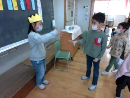 みんなでプログラムを考え、準備した「1年生キラキラピカピカ 2年生もがんばろう集会」を開きました。