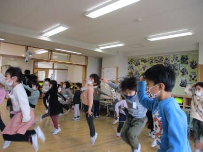3月23日(水) 1年生 2年生もがんばろう集会 2 公開日 2022/03/23 更新日 2022/03/23 1年生 集会のプログラムにはみんなに見せたい縄跳びやピアノの発表もありました。来年の自慢したい会も楽しみです。 最後には「今月の歌」で毎朝歌ってきた曲を歌い、曲に合わせたダンスでも盛り上がりました。 キラキラピカピカの1年生のみなさん、2年生もがんばりましょう!