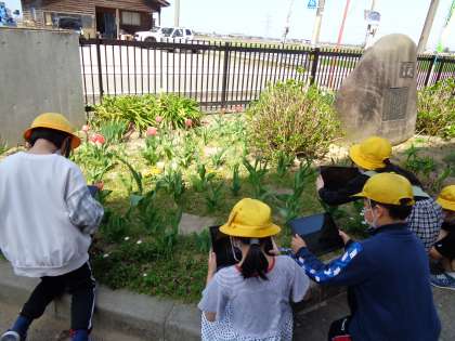 4月12日(火) 4年生 あたたかくなると 公開日 2022/04/12 更新日 2022/04/12 4年生 理科「あたたかくなると」では、春になり冬の景色と比べると植物や動物の様子はどのように変わったのかを観察しました。子供たちは、花がきれいに咲いていることやカトンボが増えていることに気付いていました。