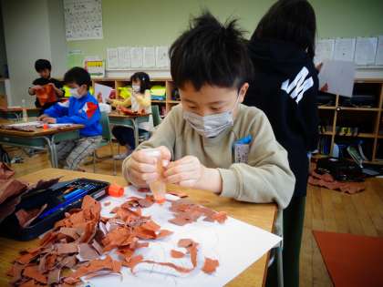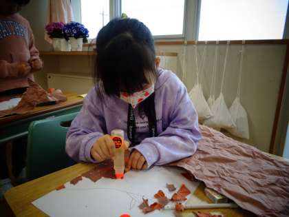 3年生 図画工作科 紙をちぎって作ったよ 公開日 2022/04/14 更新日 2022/04/14 3年生 図画工作科の学習では、春の桜をちぎり絵で作成しています。画用紙をちぎって木の幹の様子を表現しました。質感が出て、それぞれの幹に味わいが感じられました。