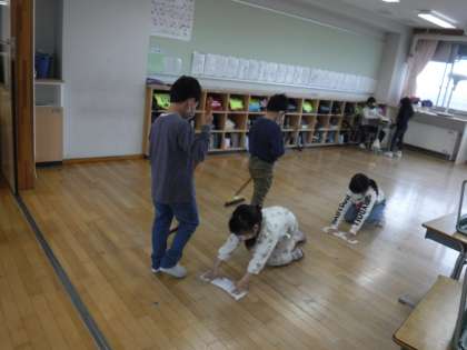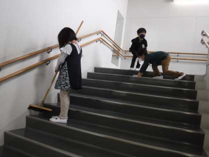 子供たちは、丁寧に担当箇所の掃除を行っています。
