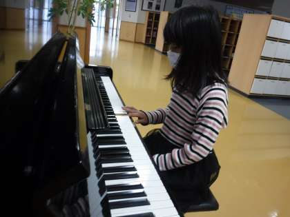 休み時間になると、校長室前のピアノを弾く子供たちがいます。