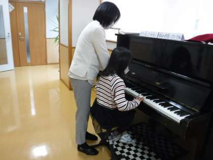 ピアノを弾く子供の隣で音楽専科の先生が手を添えてくださいました。