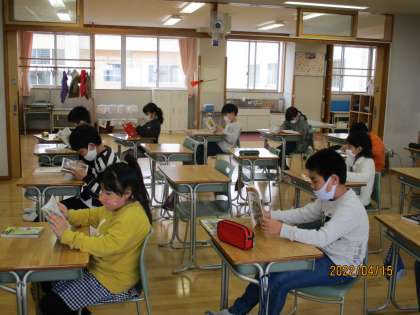 司書教諭の先生から図書室の使い方について改めてお話を伺いました。オリエンテーションが終わると、思い思いの本を選んで集中して読書をしました。