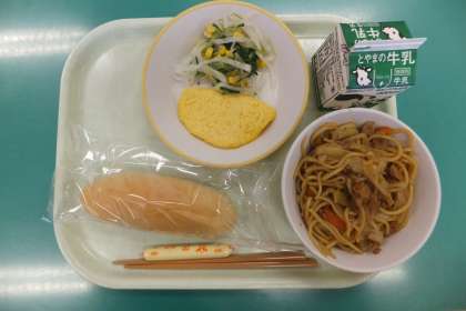 4月20日(水) 本日の給食 公開日 2022/04/20 更新日 2022/04/20 本日の給食 本日のメニューは、 ・減量コッペパン・牛乳 ・オムレツ・えごまドレッシングサラダ ・焼きそば ・棒チーズ です。 焼きそばは、子供たちの大好きなメニューです。そのまま食べる。パンにはさむ。子供たちはどのようにして食べるのでしょうか。