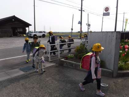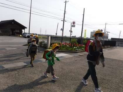 4月21日 一列に並んで登校 公開日 2022/04/21 更新日 2022/04/21 メール用カテゴリ 今朝も地域の見守り隊の方々に見守られて、子供たちが登校しました。 しっかりと一列に並んで歩いてきました。 気温が高くなってきました。 熱中症予防のため、登下校のマスクを外して歩くことを勧めています。