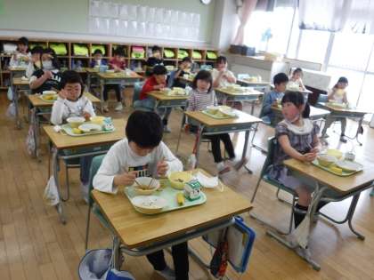 お昼になりました 公開日 2022/04/21 更新日 2022/04/21 メール用カテゴリ お昼の老田っ子の様子です。 楽しくて、ためになる校内放送を聞きながら、給食をいただいています。 今日の献立、お知らせ、今日のミュージックと続きます。 給食の豆知識は、とてもためになりますね! 食後にはしっかり歯みがきをします。 さあ、昼休みになりますね。