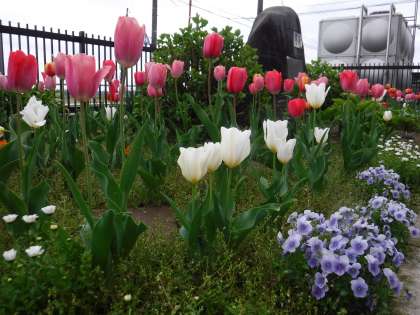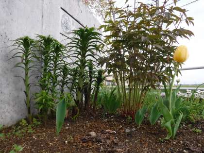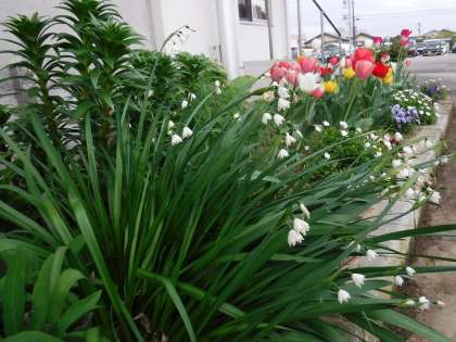 老田小学校 春の校庭 公開日 2022/04/22 更新日 2022/04/22 メール用カテゴリ 老田小学校の校庭は、今、色とりどりのチューリップが満開です。 昨日の雨が残っているチューリップがみずみずしく咲いています。 花壇の紫陽花の葉やシャクヤクやユリがぐんぐん伸びています。 少しずつ季節の移ろいを感じます。