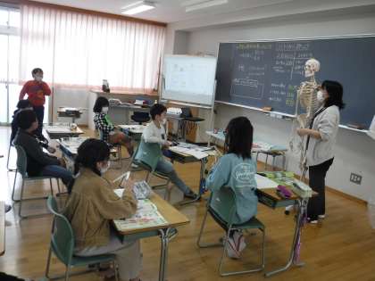 自由に動かしている腕やひじのつくりを知って子供たちは驚いていました。