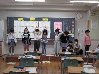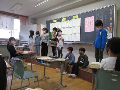 学習参観では、国語科「ふきのとう音読発表会」を行いました。子供たちは、これまで自分のめあてをもって、音読練習を重ねてきました。今日は、これまでの練習の成果を発揮できており、素敵な音読を、おうちの方に見てもらうことができました。