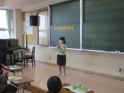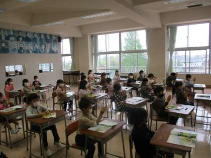 4月27日(水) 1年生 音楽科 「ひらいた ひらいた」 公開日 2022/04/27 更新日 2022/04/27 1年生 「ひらいた ひらいた」の童歌に合わせて手でつくった花を動かしました。リズムに乗って体を揺らし、楽しんで活動していました。