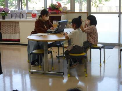 今日は、下学年の子供たちが聴覚検査を受けました。