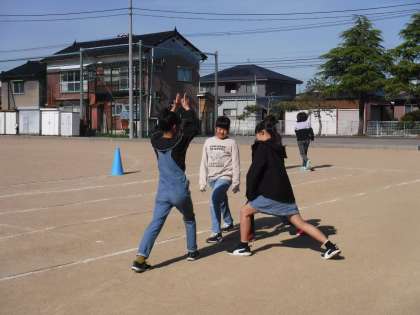 「マスクは運動中は外しましょう」と、運動委員が声をかけています。